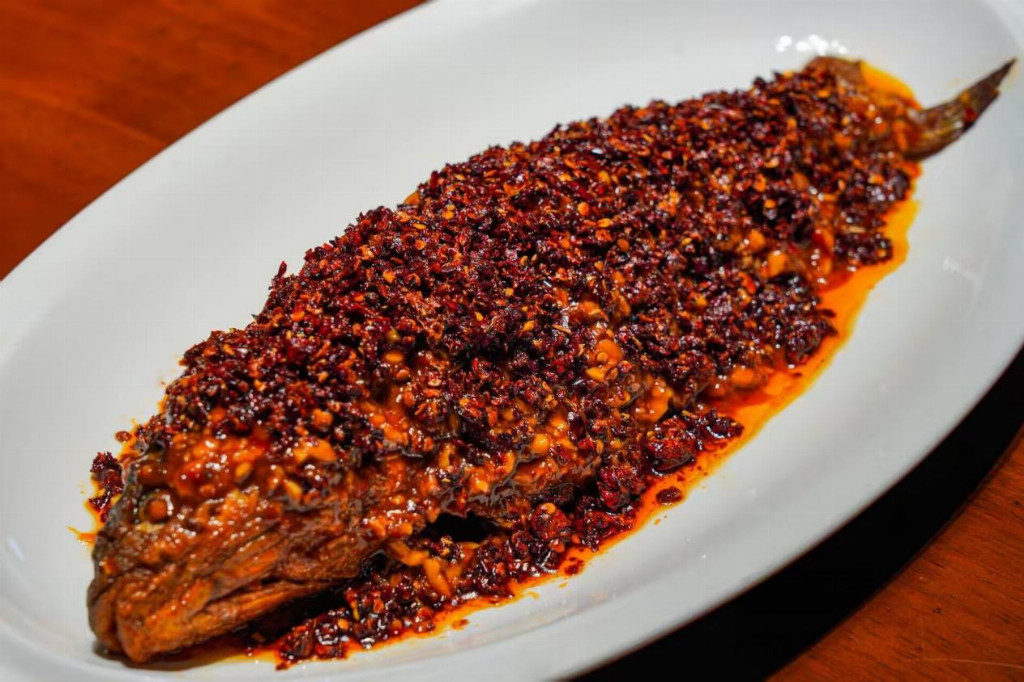 图为都江堰非遗菜品炝锅鱼成品。